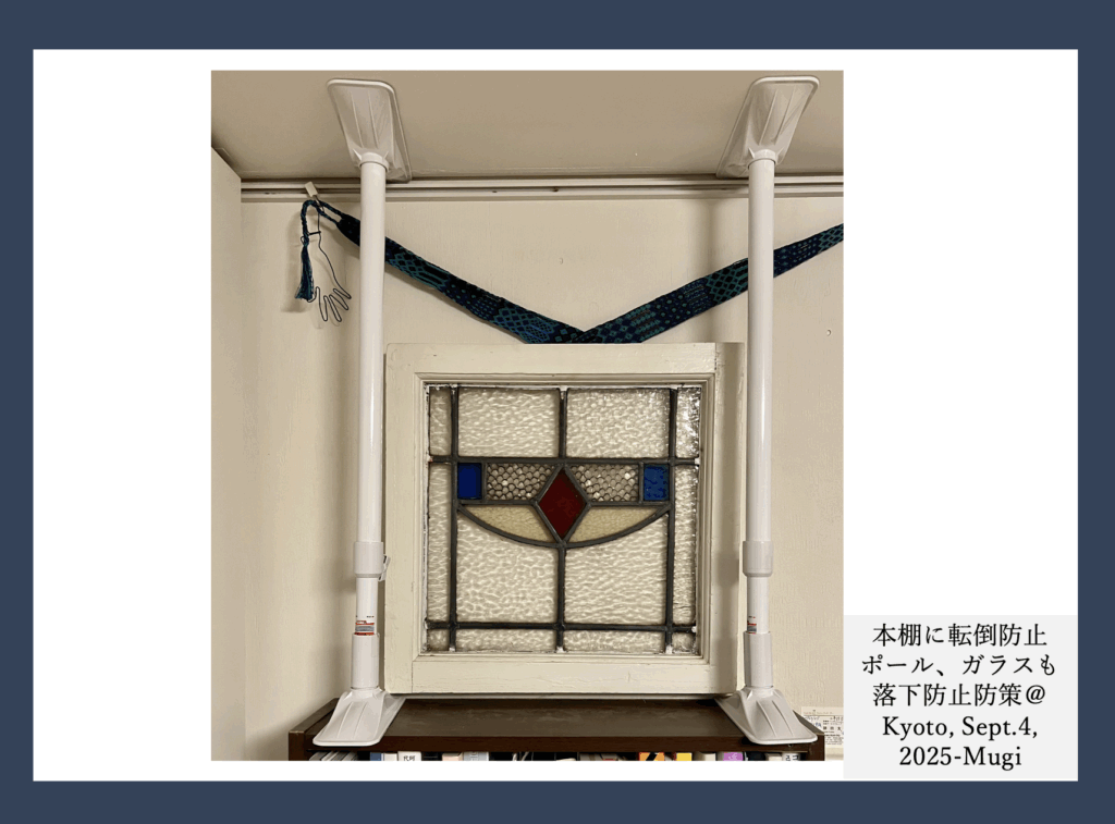 自分が一番長く利用する自室の本棚は、その時々の資料の利用や気分が変わると場所を移動させたり、本の衣替えするので、金具で固定させるのではなく、天井と本棚の間にポールを入れました。政府広報の「【防災特集】災害に事前に備える」では、「家具等の転倒防止」「災害用品」「備蓄品の確認」「ペットの備え」などについて、イラスト入りでみやすく、説明されています。