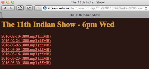 Archive of The 11th Indian Show66pm Wed. from WRFU