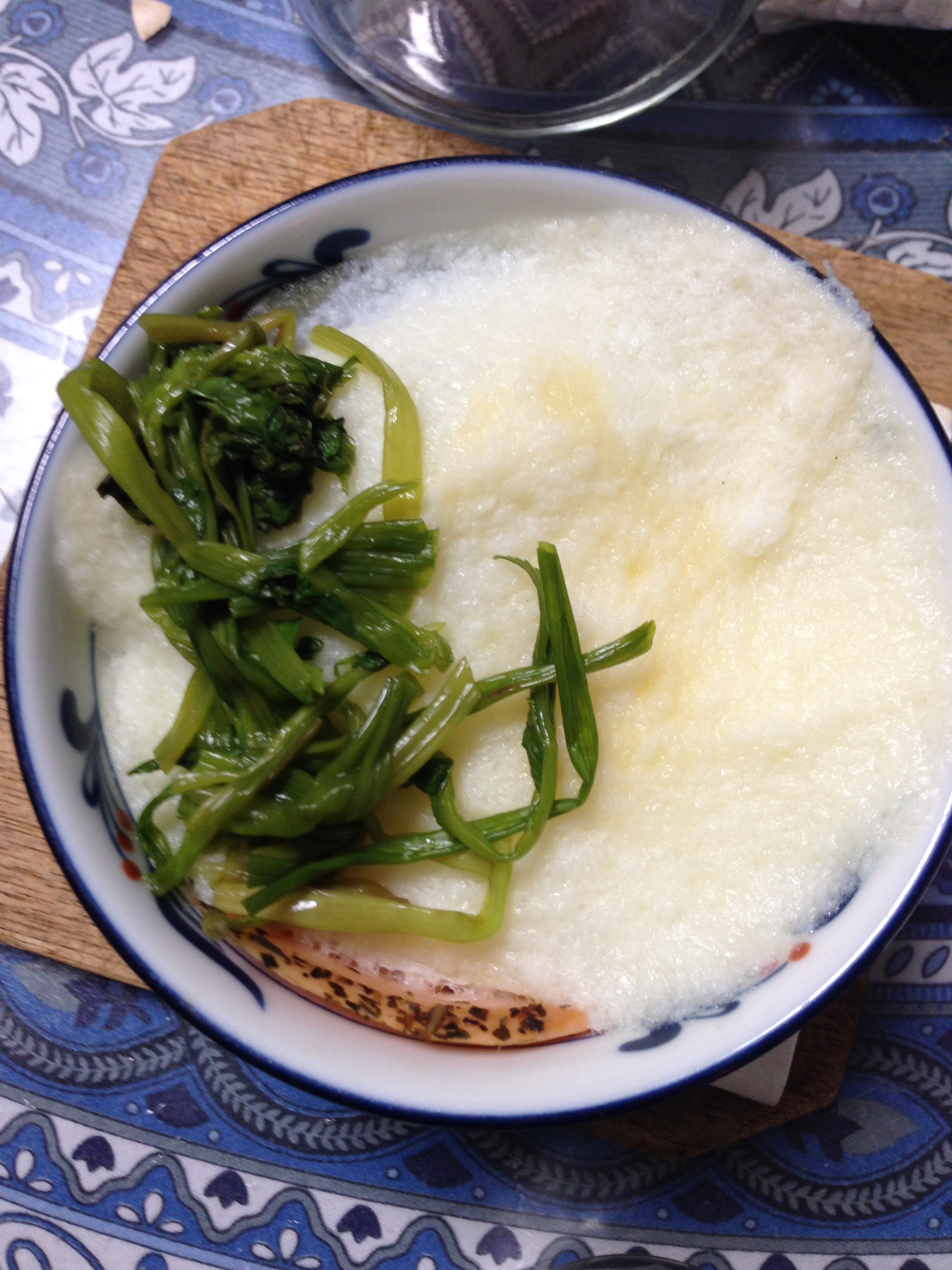 蕪蒸し、青味(セリ)をのせあんかけ(出汁、お酒、醤油少々、葛)